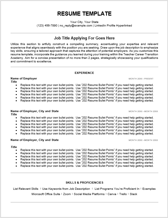 Step 1: Be sure to watch the accompanying Resume Template video that explains the WHY behind this template.